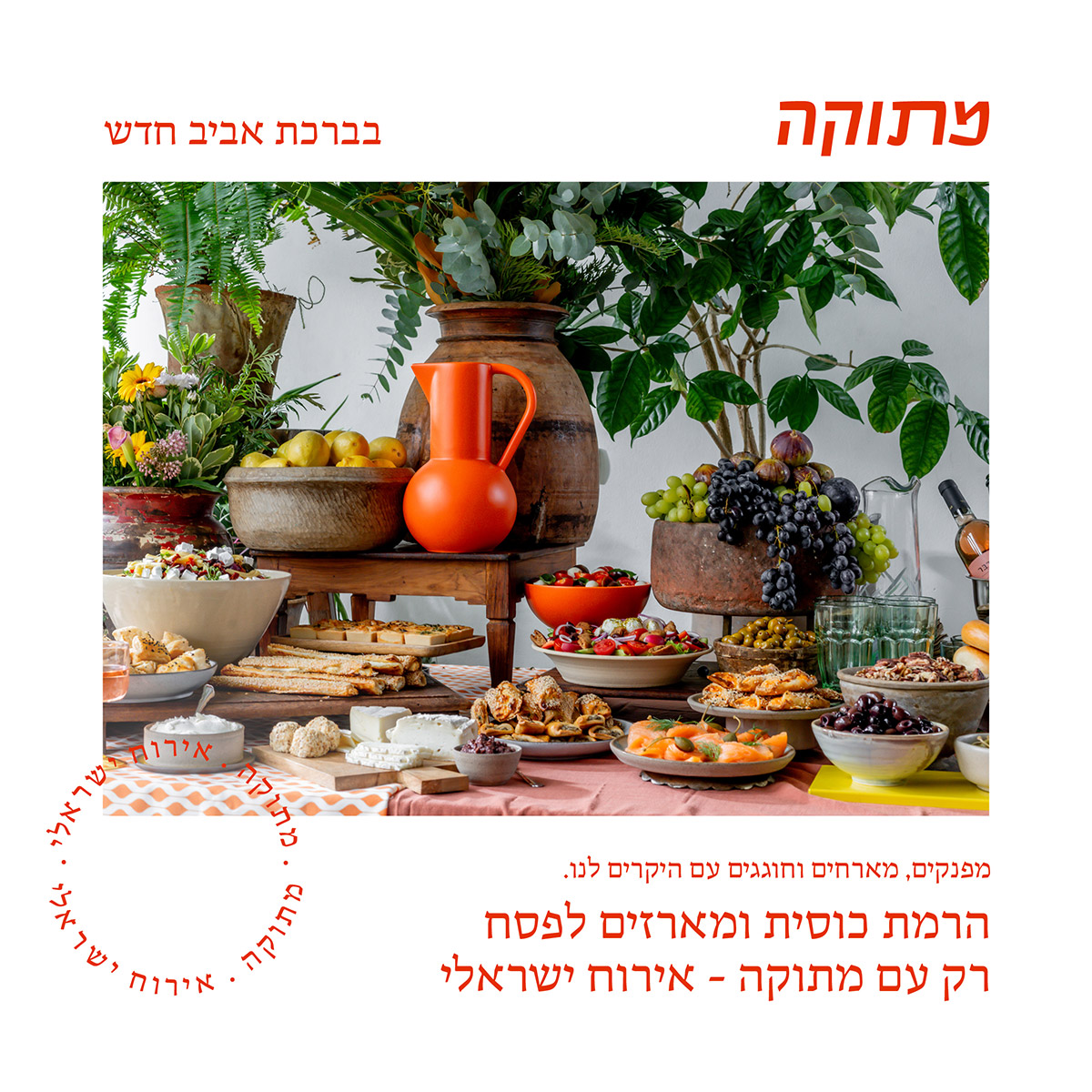 מגשי אירוח הם פתרון אידיאלי לכל סוג של אירוע, מפגישות עסקיות וארועים גדולים ועד לחגיגות משפחתיות. המגשים שלנו עשויים מחומרי גלם טריים ומשובחים, עם דגש על שילובי טעמים ייחודיים שמפתיעים את החך ויוצרים חוויה קולינרית מהנה. באתר האינטרנט של מתוקה תמצאו מגוון אינסופי לאירוח ישראלי איכותי ומוקפד. ניתן להזמין בקלות פינגר פוד מהמם, מגשי פירות, מגשי ירקות, כריכים, סלטים, קישים, מרקים, מנות ראשונות, גבינות, מאפים, מנות חמות, קונדיטוריה עשירה ופינוקים מתוקים. כל מגש נארז בקפידה, ומגיע בעיצוב מרהיב שמדגיש את האסתטיקה של המנות. אנו דואגים להתאים את המגשים לאירוע, עם אפשרויות טבעוניות, צמחוניות וללא גלוטן, וללא סוכר. מתוקה תספק לכם גם שירותי עיצוב שולחן, צוות מלצרים לתפעול כל ארוע, מוזיקה, פרחים, יין וקוקטיילים, ציוד לארועים וכל שנדרש לאירוע מושלם ולחוויה קולינרית ייחודית, יפה, מרשימה ובלתי נשכחת.